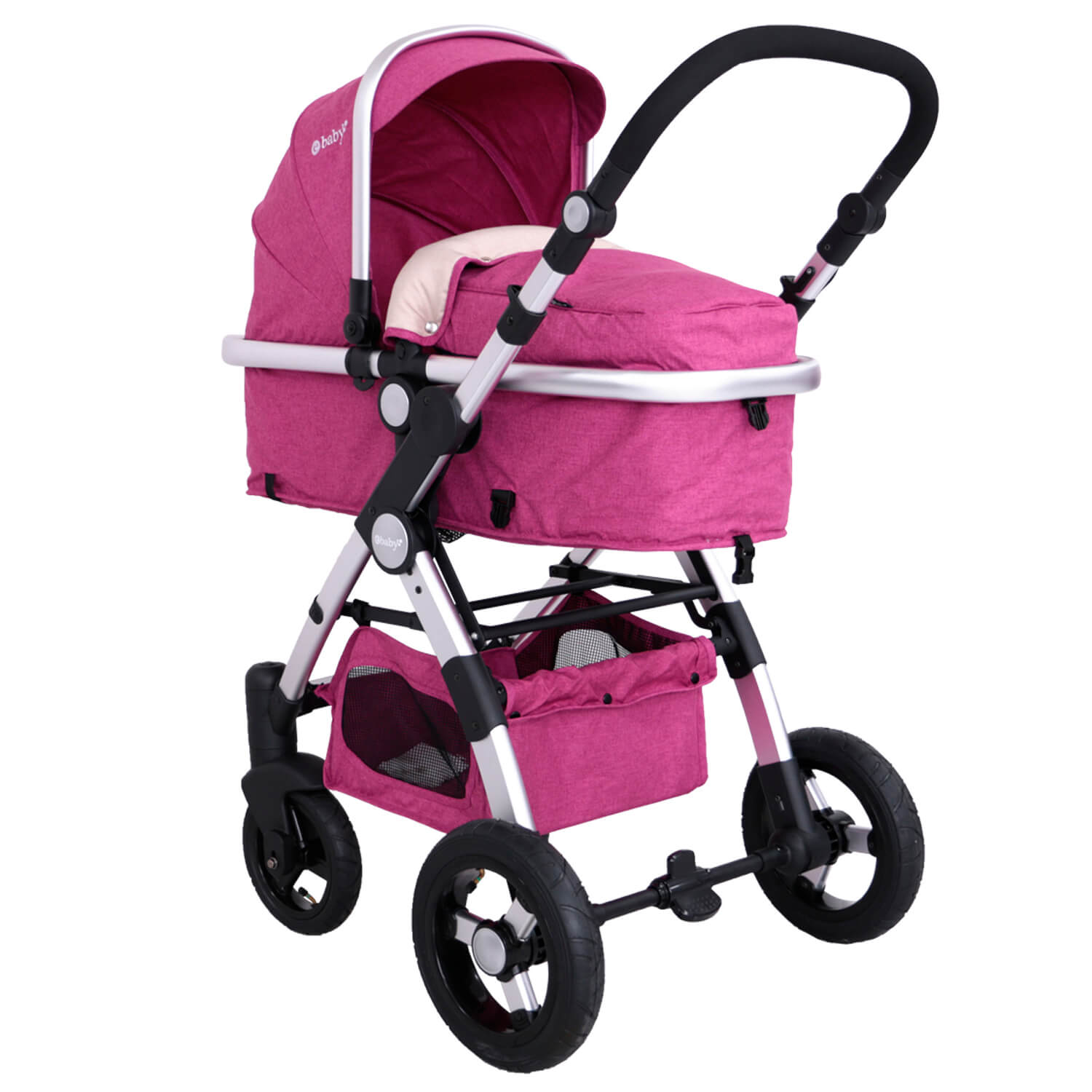 Un coche moisés posición de 180°, amplio y acolchado. Ebaby trabaja siempre con elementos de la mejor calidad
